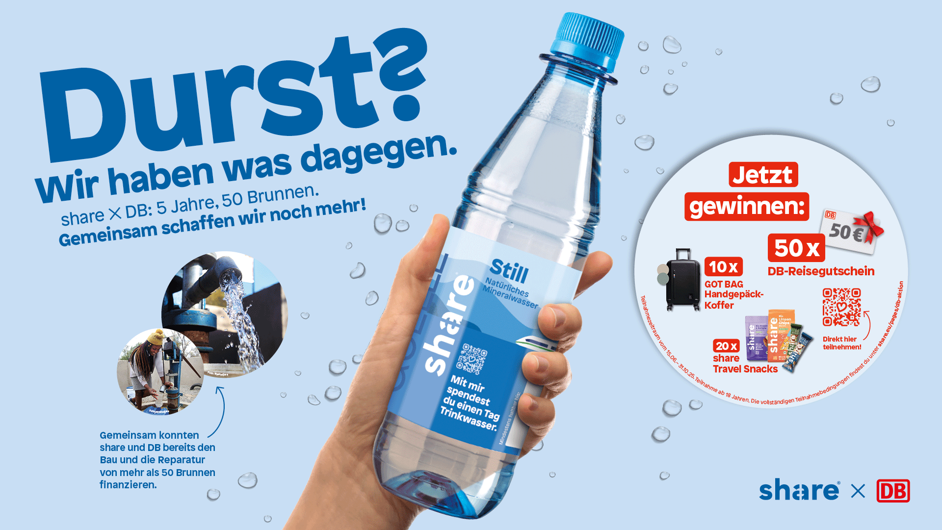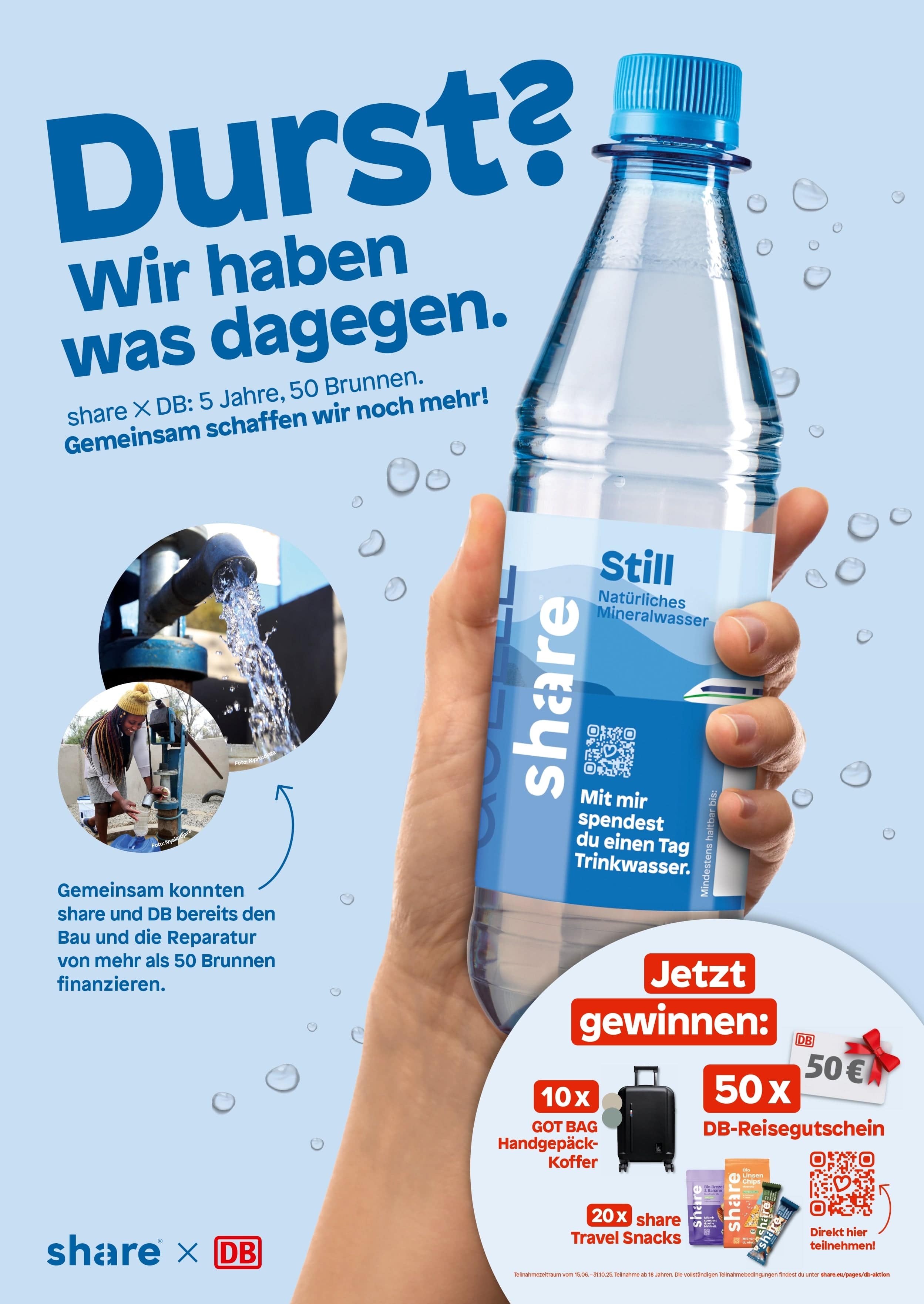 Diese Projekte konnten wir nur mit der Hilfe der Fahrgäste der DB ermöglichen - denn jede gekauft Flasche share Wasser spendet einen Tag Trinkwasser.