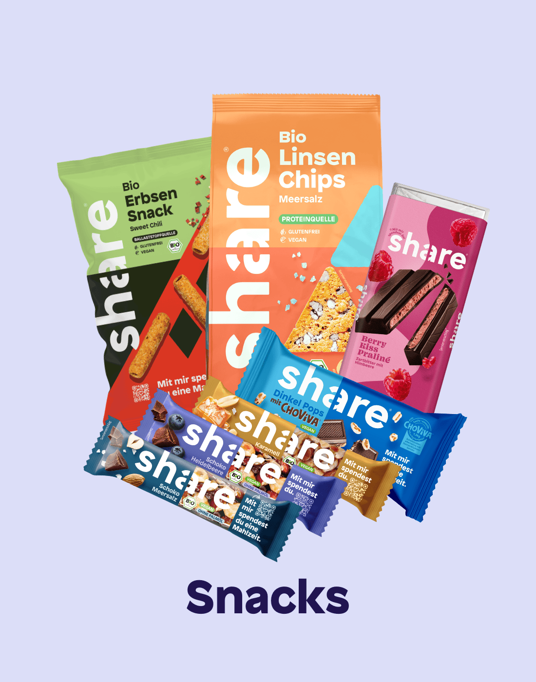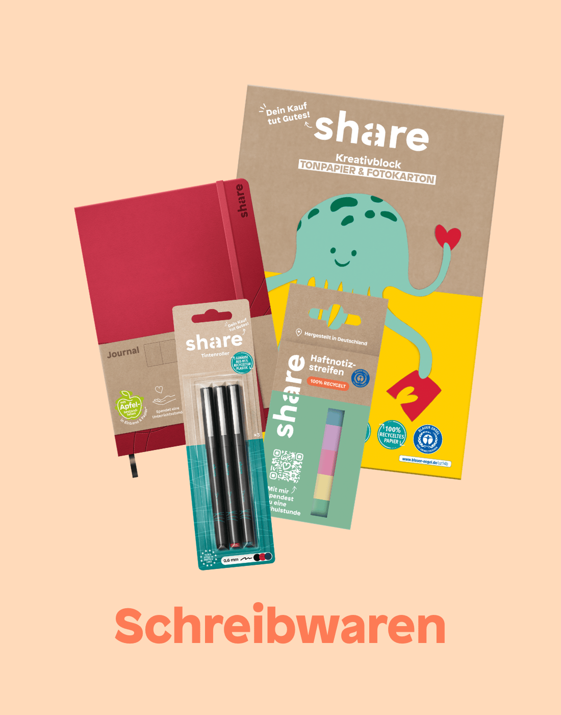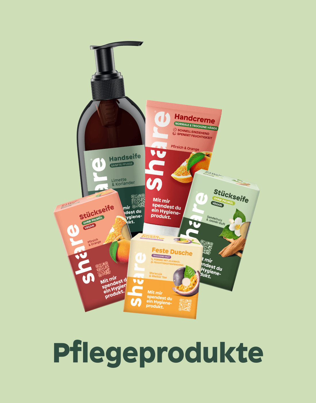 Mit jedem Kauf eines share Produkts hast du einen Menschen mit einer Hilfeleistungen unterstützt.