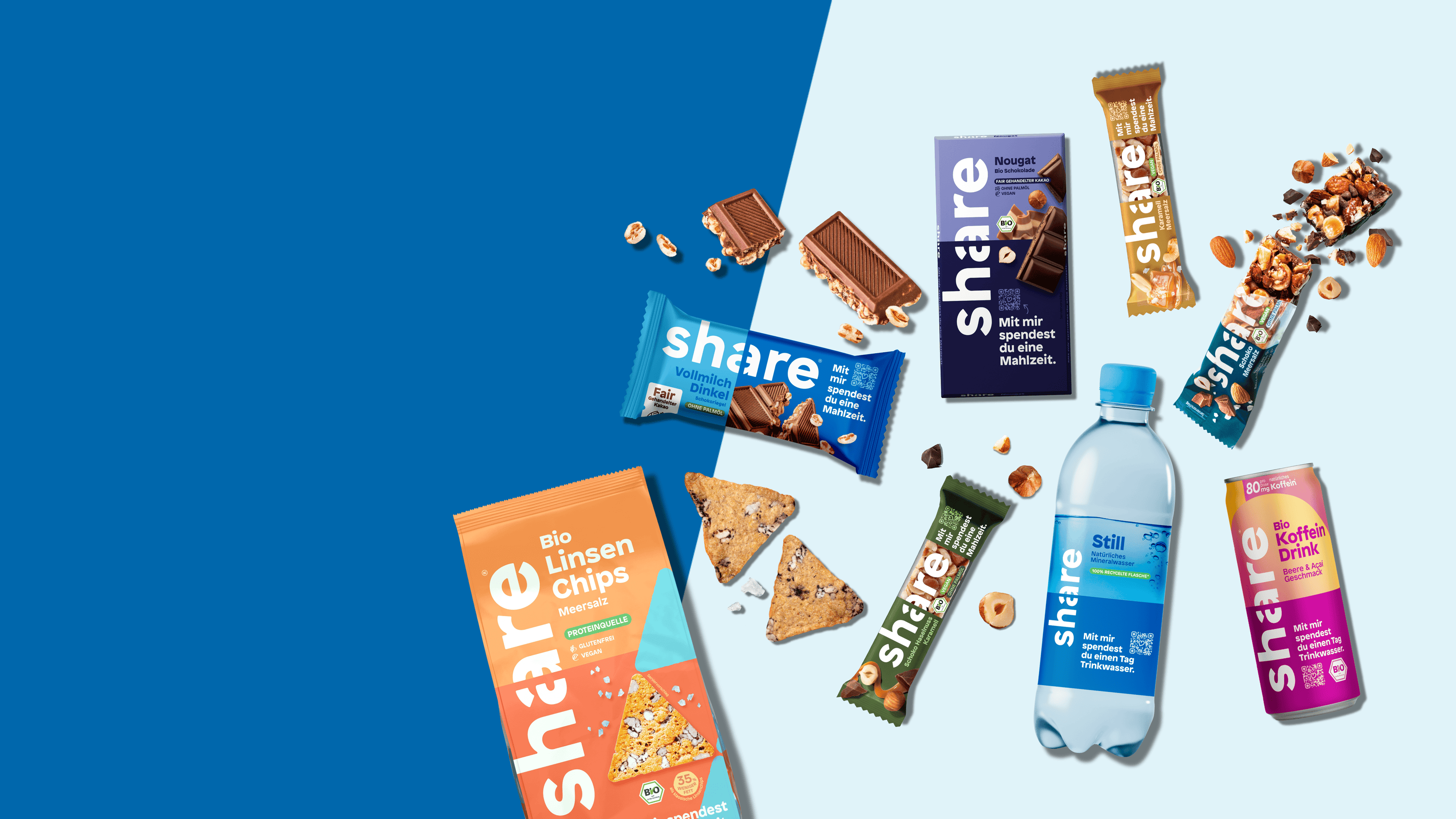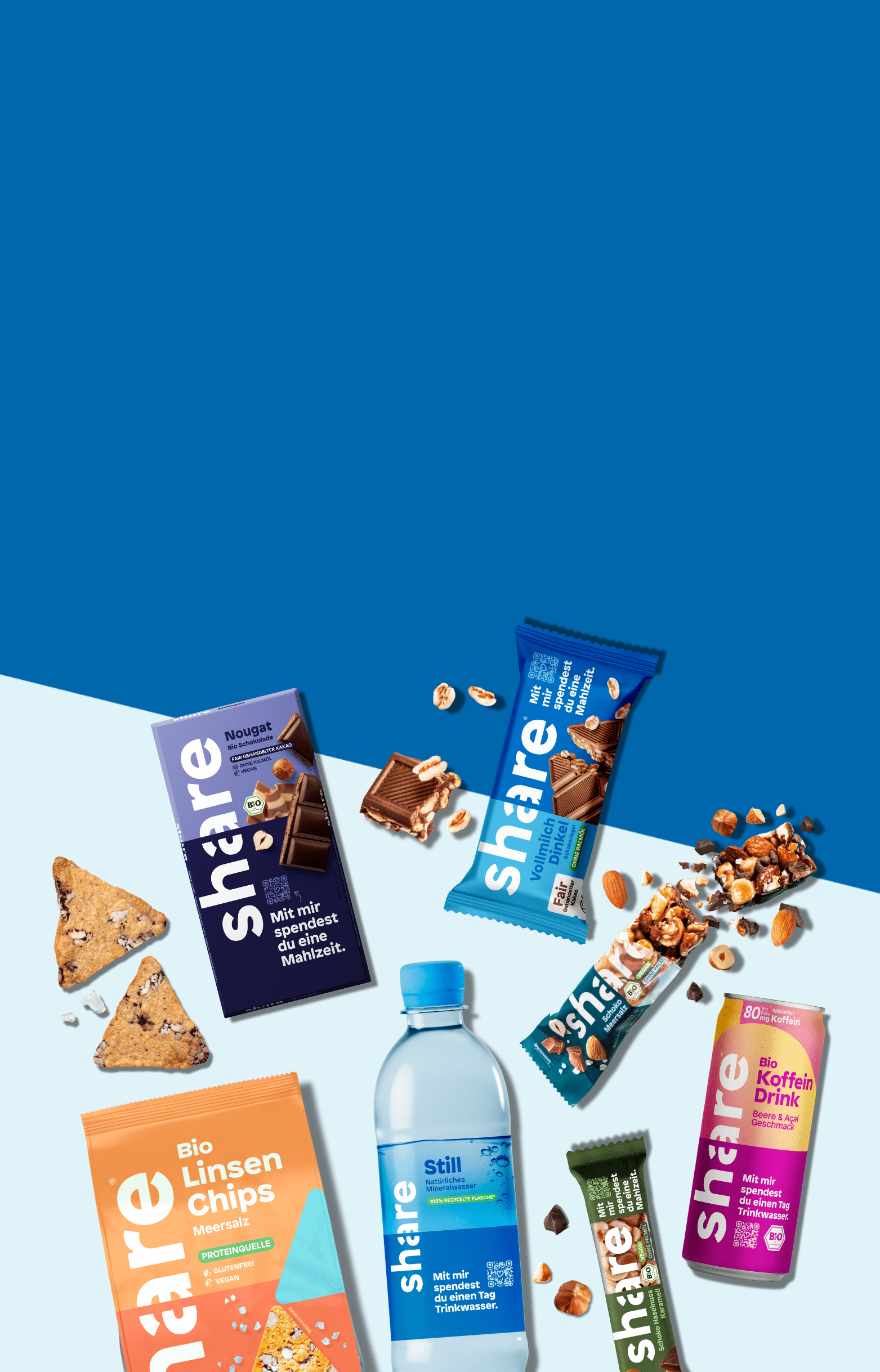 2018 gründeten die Freund:innen Sebastian, Ben, Iris und Tobias share – deine soziale Marke, bei der jedes Produkt eine Spende beinhaltet. Angefangen mit einem Wasser, einem Riegel und einer Seife sind wir mittlerweile bei über 100 Produkten, die es dir ermöglichen, täglich Gutes zu tun.