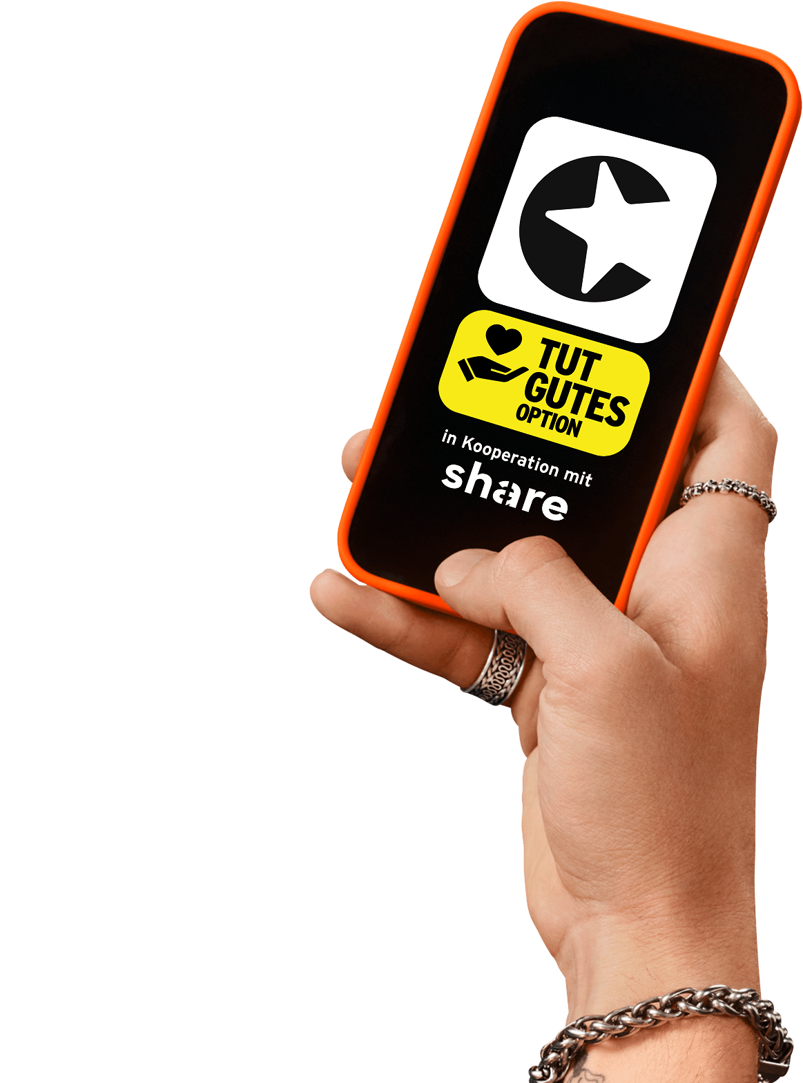 Die Tut Gutes Option ist zu allen congstar Allnet Flat Tarifen zubuchbar. Zudem erhöht sich bei Buchung das Highspeed-Datenvolumen entsprechend der Übertragungsgeschwindigkeit deines Tarifs bzw. der 5G Option (sofern gebucht) um zusätzlich 1 GB / Monat. Die Tut Gutes Option ist monatlich flexibel zu- und abwählbar.