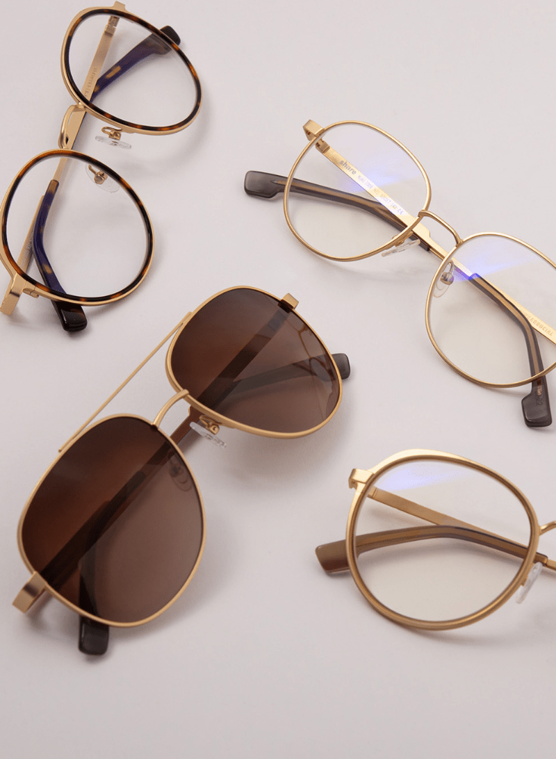 Bei allen 31 Brillenmodellen kannst du beliebig die Gläserfarbe wechseln oder dir Gläser mit Stärke einsetzen lassen.